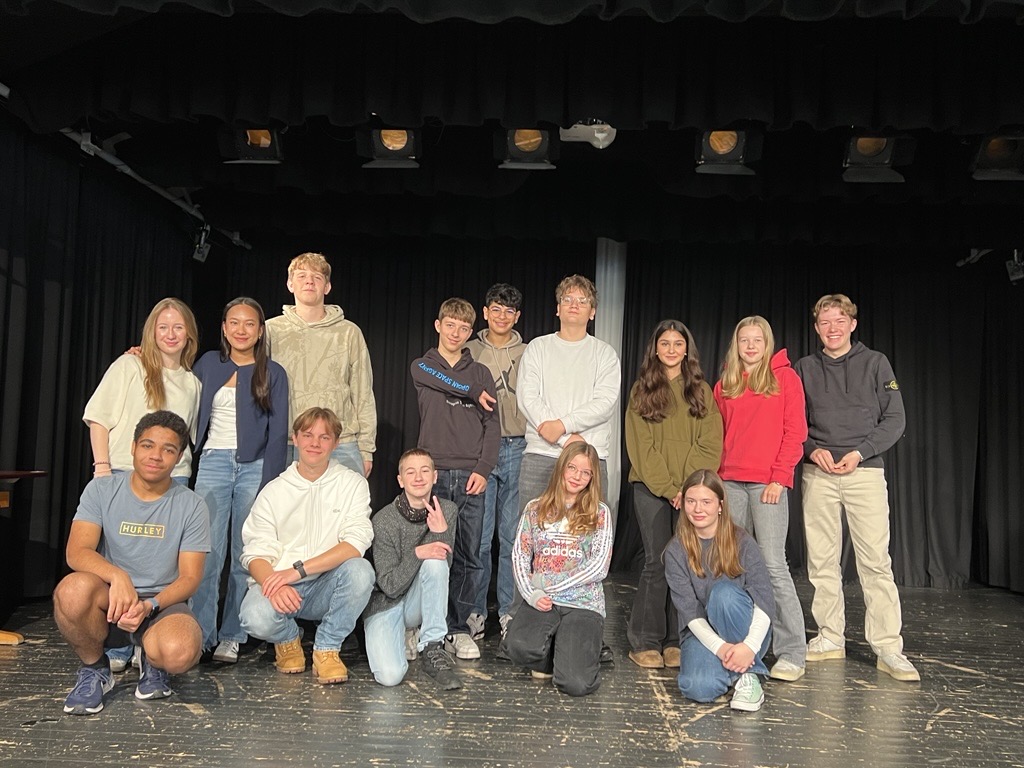 Die SV hatte im Rahmen des Pilotförderprogramms „Jugendthemen in Bielefelder Schulen“ Fördergelder erhalten, die noch in diesem Kalenderjahr 2025 ausgegeben werden mussten. Nach gemeinsamen Überlegungen fiel die Wahl auf einen theaterpädagogischen Workshop mit den beiden Theaterpädagoginnen Merisa Ferati und Gaye Mutluay. Ein Termin war auch gefunden – der 27.10.25, der erste Tag nach den Herbstferien! So kamen Schüler*innen der SV und Klassensprecher*innen der Jahrgänge 8-EF zusammen und starteten mit theaterpädagogischen Warm-ups den Workshop. Schnell wuchs die Gruppe zusammen und es entstand eine vertrauensvolle Atmosphäre, in der dann gut gearbeitet werden konnte. Gemeinsam wurde überlegt, was Rassismus eigentlich bedeutet und sich einer Definition angenähert. In einem weiteren Schritt sollten alle persönlich Fragen oder Statements für sich beantworten. Aus dieser Übung wurde sehr deutlich, wie privilegiert manche sind, da sie noch nie oder kaum mit Rassismus in Berührung gekommen sind und andererseits auch, das viele schon Rassismus erlebt oder gespürt haben.