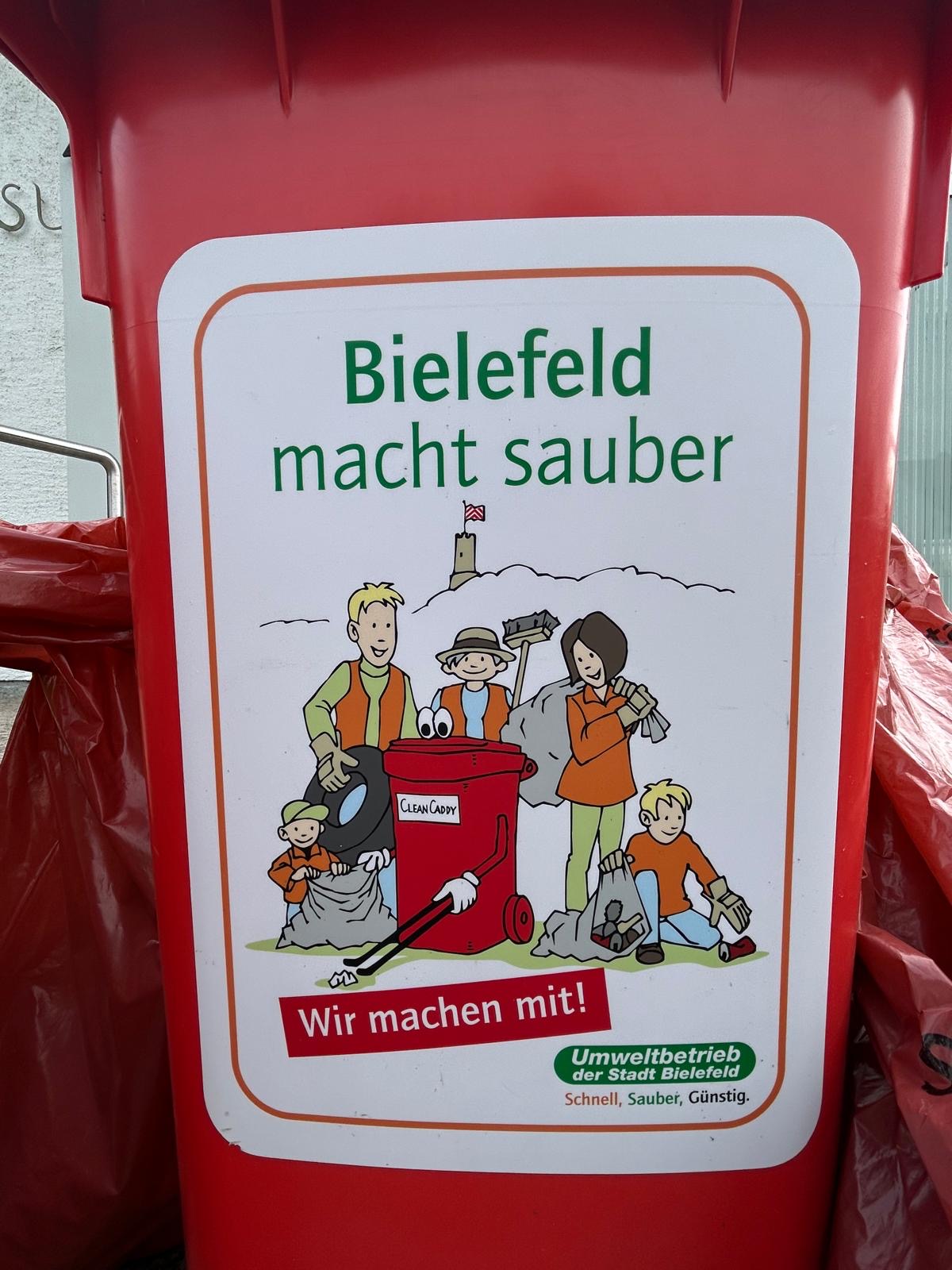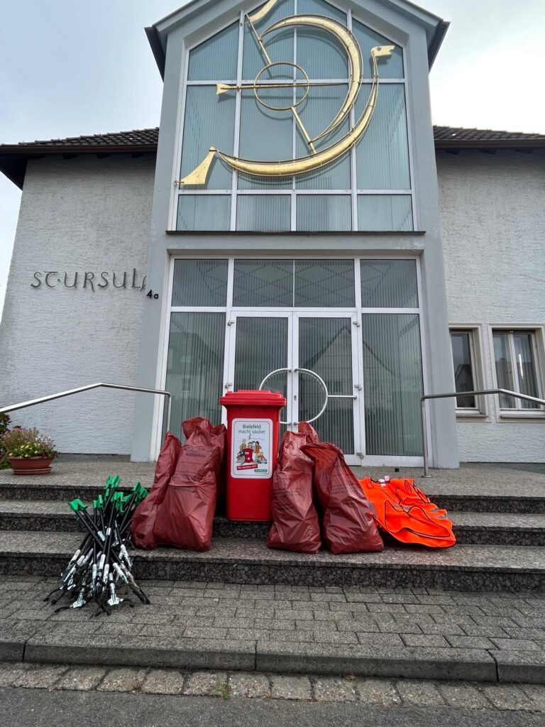 Ebenfalls bedanken möchten wir uns bei Frau Wilder vom Umweltbetrieb der Stadt Bielefeld. Sie stellte schnell und unkompliziert den CleanCaddy mit ausreichenden Westen, Greifern sowie Müllsäcken zur Verfügung – letztere wurden noch am Sammeltag final und kostenfrei dem Wertstoffhof Mitte übergeben, dort, wo sie hingehören, statt unsere Umwelt zu belasten. 🌍💚
