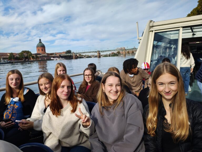 Vom 1.- 9. Oktober 2025 war es wieder so weit: Mit einer Gruppe von 28 Schüler*innen der Klasse 9-10 haben wir unsere Partnerschule in Figeac, Südfrankreich besucht. Wir waren in Gastfamilien untergebracht, haben am Schulunterricht unserer französischen Austauschpartner*innen teilgenommen und tolle Ausflüge gemacht. So waren wir an einem Tag in der wunderschönen Stadt Toulouse und haben auch die Grotten von Padirac mit einer unterirdischen Bootsfahrt erkundet. Nach einer erlebnisreichen Woche mit viel französischer Kultur und vielen Sprachbegegnungen gab es auf der Rückreise noch ein „Highlight“: ein Zwischenstopp in Paris mit einer nächtlichen Bootsfahrt auf der Seine. Nun freuen wir uns schon auf den Gegenbesuch der französischen Gruppe bei uns, der im nächsten Jahr in der Woche rund um den 2. Advent stattfinden wird.