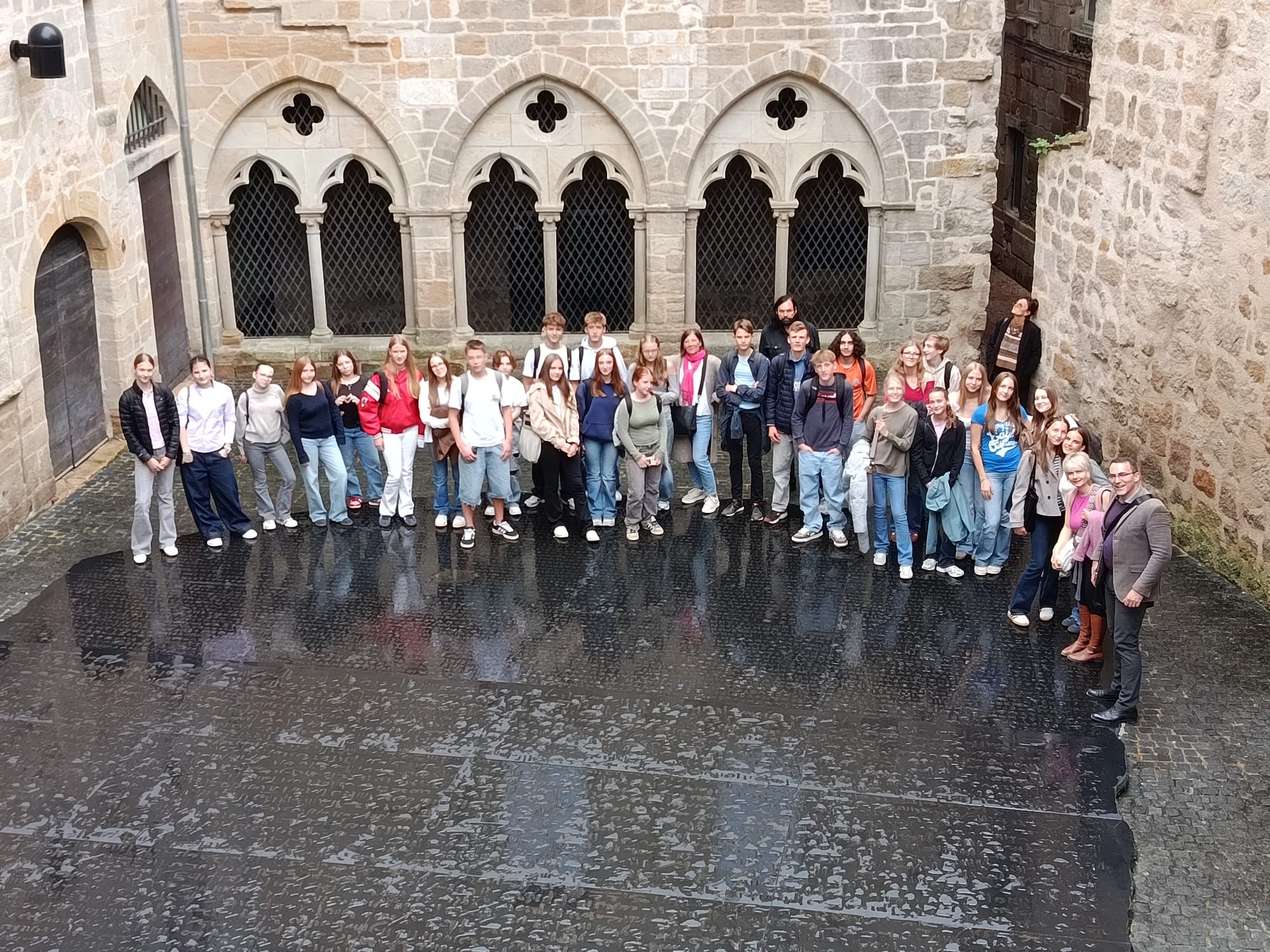 Vom 1.- 9. Oktober 2025 war es wieder so weit: Mit einer Gruppe von 28 Schüler*innen der Klasse 9-10 haben wir unsere Partnerschule in Figeac, Südfrankreich besucht. Wir waren in Gastfamilien untergebracht, haben am Schulunterricht unserer französischen Austauschpartner*innen teilgenommen und tolle Ausflüge gemacht. So waren wir an einem Tag in der wunderschönen Stadt Toulouse und haben auch die Grotten von Padirac mit einer unterirdischen Bootsfahrt erkundet. Nach einer erlebnisreichen Woche mit viel französischer Kultur und vielen Sprachbegegnungen gab es auf der Rückreise noch ein „Highlight“: ein Zwischenstopp in Paris mit einer nächtlichen Bootsfahrt auf der Seine. Nun freuen wir uns schon auf den Gegenbesuch der französischen Gruppe bei uns, der im nächsten Jahr in der Woche rund um den 2. Advent stattfinden wird.