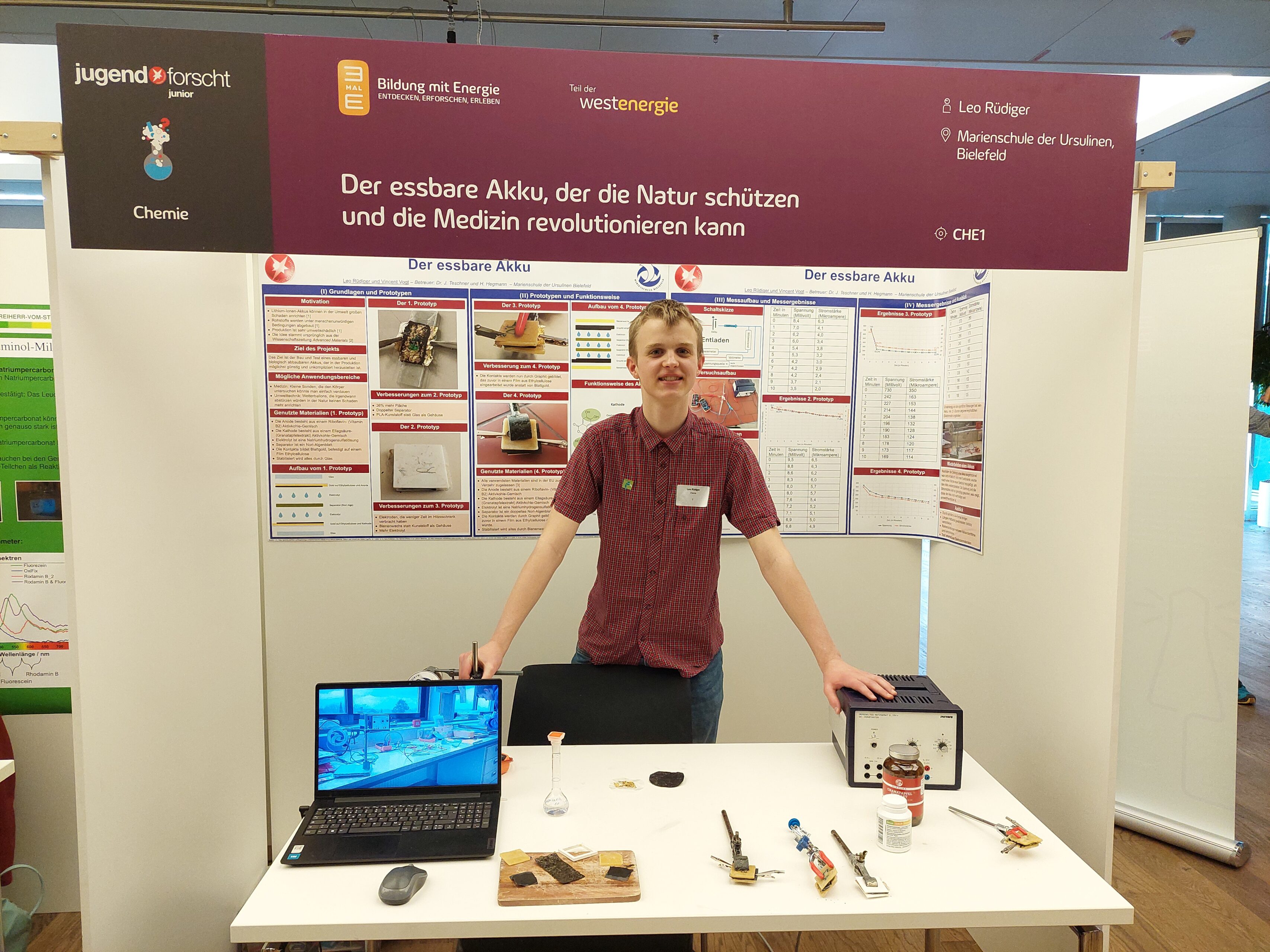 | 2025 | Schüler experimentieren (Landesebene, Essen) | Essbarer Akku | 1. Platz Chemie; Sonderpreis Ressourceneffizienz |